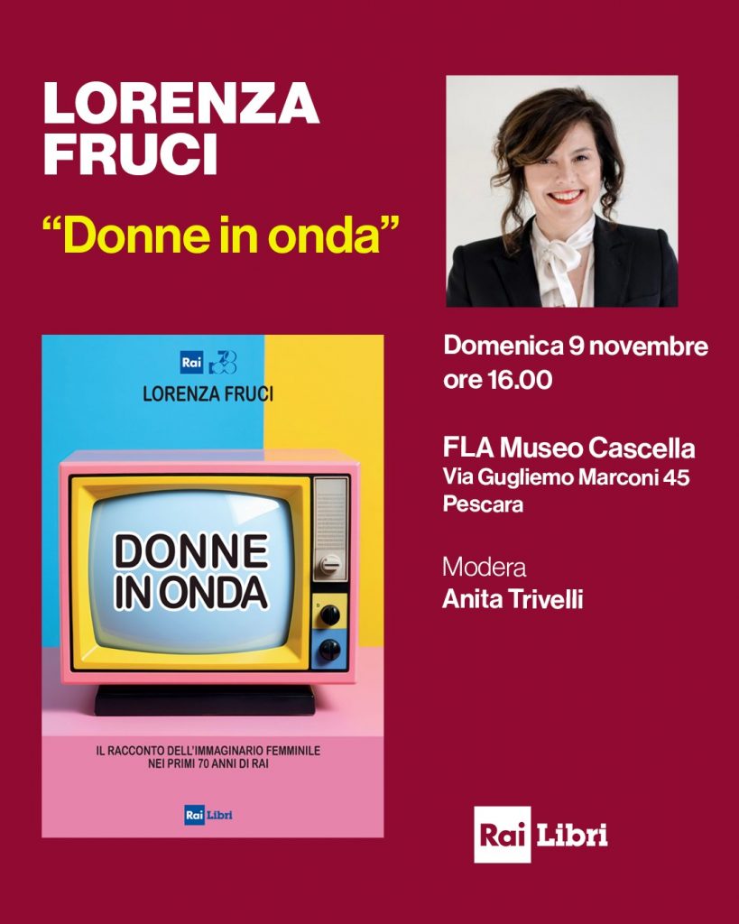 Domenica 9 novembre alle ore 16 Lorenza Fruci presenta “Donne in onda. Il racconto dell’immaginario femminile nei primi 70 anni della Rai” a Pescara (FLA Museo Cascella, Via Gugliemo Marconi 45). Dialoga con l’autrice Anita Trivelli. A settant’anni dalla prima trasmissione televisiva ufficiale del Servizio Pubblico il volume ripercorre alcuni fondamentali momenti della rappresentazione della condizione femminile nei programmi della tv pubblica: dall’inchiesta del 1959, “La donna che lavora”, a quella del 1976 sulla “questione femminile”, a “Si dice donna”, programma storico sul femminismo, ad “Amore Criminale”, che dal 2007 denuncia la violenza sulle donne, fino alla tv dei nostri giorni.