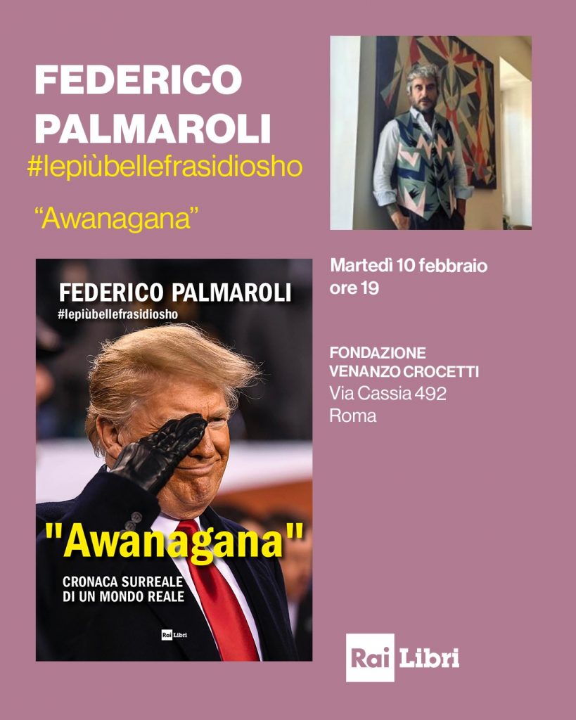 Martedì 10 febbraio alle ore 19 Federico Palmaroli #lepiùbellefrasidiosho presenta “Awanagana. Cronaca surreale di un mondo reale” alla Fondazione Venanzo Crocetti (Via Cassia 492) a Roma. Pagina dopo pagina, l’autore accompagna il lettore in un viaggio comico dentro il 2025: dalle elezioni americane ai vertici internazionali, dalla crisi climatica alle gaffe dei potenti. ”Awanagana” ricorda che ridere delle contraddizioni del nostro tempo non significa banalizzare, ma capirle da un’altra prospettiva.